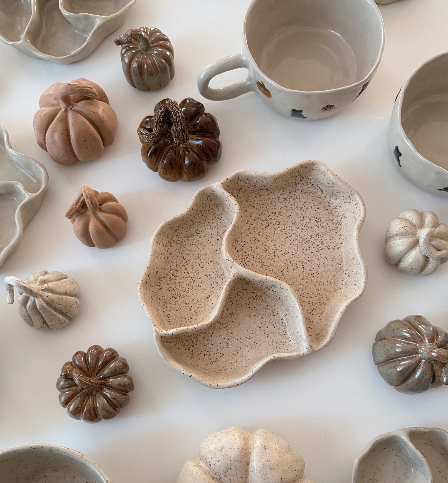 Find your new cosy fall decoration here. Shop mugs, jewelry dishes and cute pumpkins.