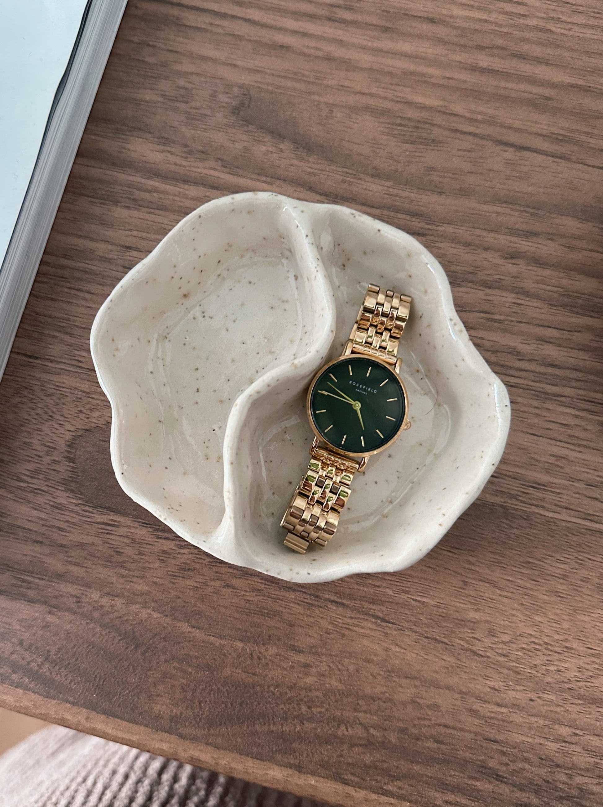 A cute small jewelry dish perfect for storing your jewelry in a decorative way.