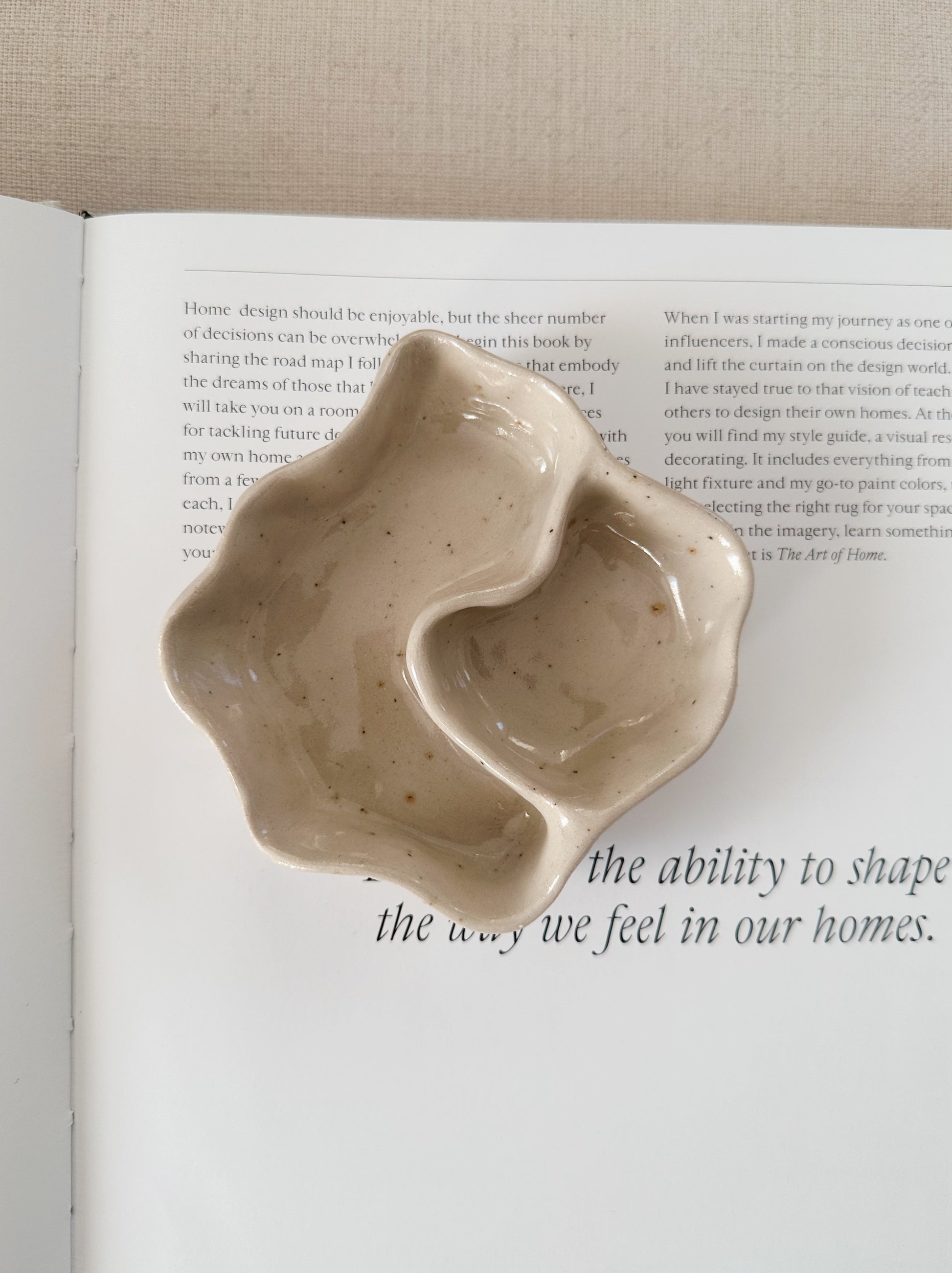 A jewelry dish perfect for storing your jewelry in a decorative way. Could also be used to plate smaller snacks such as olives. The top one in the second photo.